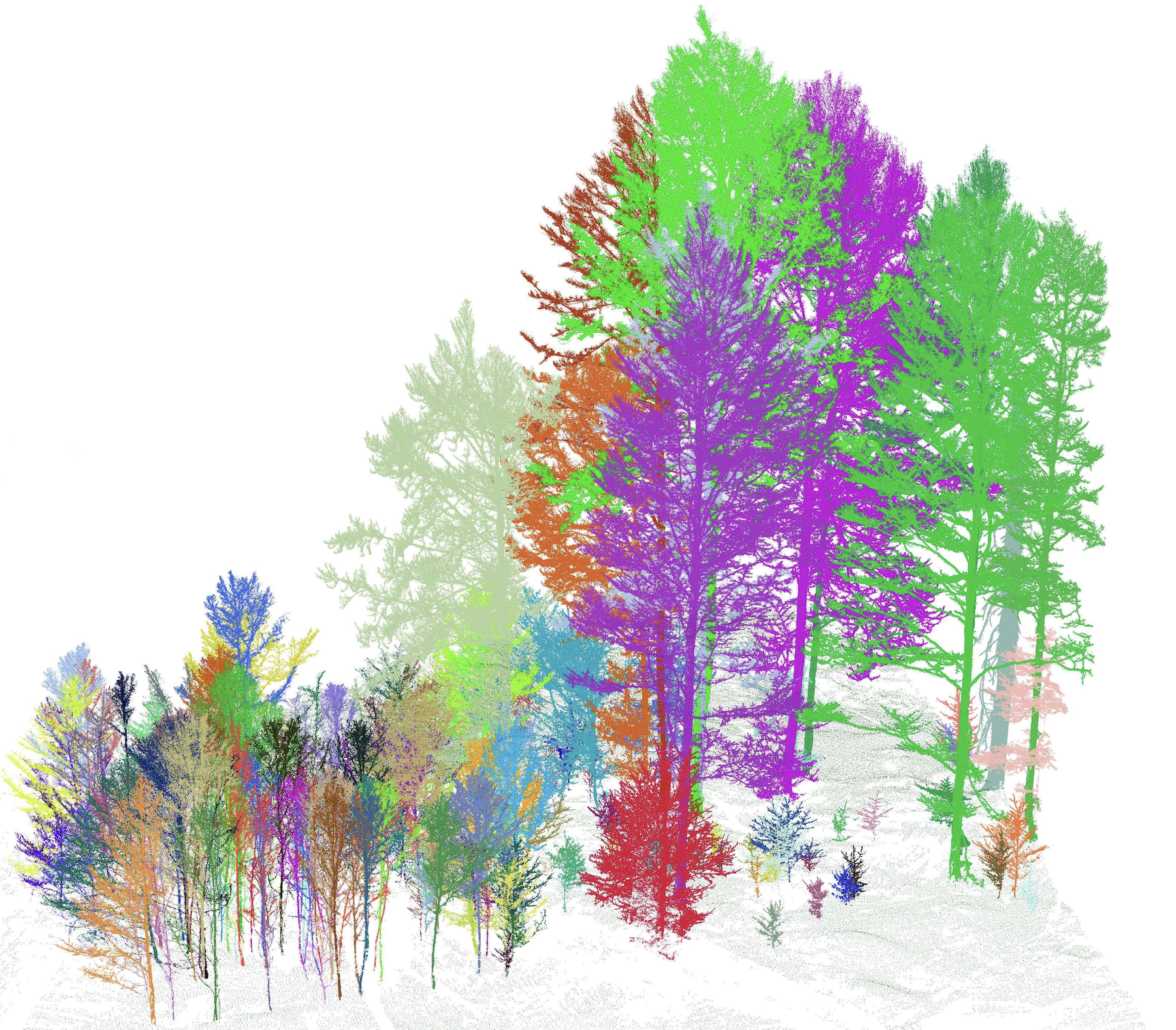The traditional way to make these census maps is to directly measure the location, trunk diameter and species of every tree that’s chest high and over 1 centimeter wide. Sedio and his team are now developing a more automated approach to do it faster and cheaper. First, they use lidar (from ground instruments and drones) to create a 3D map of the trees. Second, they use AI software trained on direct measurements of a smaller sample area to extrapolate from the 3D lidar map to a 2D census map.